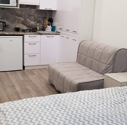 Сдается помесячно до мая студия 22 кв.м. в ЖК Green Palace с тёплым бассейном. Современный ремонт, барная стойка, спальное двуспальная кровать 140*200, ванная комната с душевой кабиной. Кухонная зона оборудована всей необходимой техникой. Идеально подходит парам. Инфраструктура комплекса: Комплекс Green Palace состоит из современных домов в стиле хайтек. Доступна закрытая территория с 4 бассейнами, 2 круглогодично тёплых с температурой воды +30, игровыми и спортивными площадками, прогулочной зоной отдыха с беседками. Бесплатный wi-fi в апартаментах и на территории ЖК Green Palace. Стихийная парковка у дома. Территория охраняется. Видеонаблюдение. Чисто и порядок. Можно арендовать баню с мангальной зоной и купелью на территории. О районе: От дома до центра и набережной моря пешком 30 минут, удобно добираться на такси или на автобусе 14, 13, что займет 15 минут езды. Магазины, остановка общественного транспорта рядом. Зимний театр, пляж Приморский 3 км. Условия размещения: - Аренда длительно до мая - Страховой депозит 20 000 рублей - С питомцами не размещаем 33000 рублей + коммунальные. Комиссия 5000 руб Сдается квартира-студия на улице Молодогвардейская в городе Сочи.