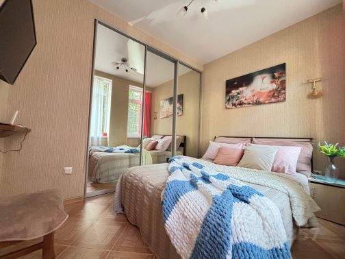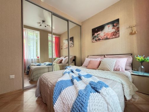 Находится в многоквартирном доме с ЛИФТОМ. Здесь есть все для комфортного проживания. Удобный диван, спальное место у которого в разложенном виде 200см*200см, двухярусная кровать в отдельной комнате за раздвижной перегородкой, телевизор SMART TV, гладильная доска, сушильная доска, утюг, фен, постельные принадлежности, полотенца, мощная сплит система, высокоскоростной интернет и WiFi, стиральная машина-автомат, кухонная мебель, холодильник, микроволновая печь, электрический чайник, индукционная 4х комфорочная плита, вся необходимая посуда и кухонные принадлежности для приготовления и хранения продуктов. Балкон французский и выйти на него невозможно. Квартира находится в Самом Центре Адлера на ровной местности, далеко от ж/д путей и без переходных мостов. Дорога к морю прямая, спокойная и безопасная.