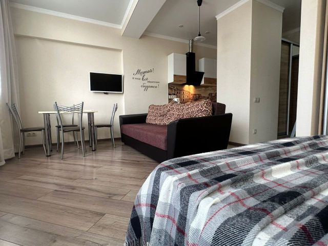 Сдается студия в новом доме с консьержем. Огороженная территория, близость к супермаркетам, кафе, ресторанам. До моря вдоль речки пешком 3 минуты. Квартира после ремонта, с выделенными зонами кухни и спального места. Есть все необходимое для комфортной жизни. Приятные арендодатели, интересные соседи. Квартира сдается длительно и без выселения в сезон, что подтверждаем в договоре. Коммунальные услуги и счетчики оплачиваются отдельно. Звоните прямо сейчас, вариант отличный!