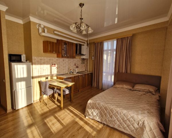 Квартира-студия находится на 3-м этаже частного дома, Есть всё необходимое для комфортного проживания - телевизор, кондиционер, холодильник, плита, вытяжка, стиральная машина, посуда, тёплые полы. С/у совмещен с душем. Вся инфраструктура рядом. Море в пешей доступности. Рядом развязка на дублёр. Собственник.