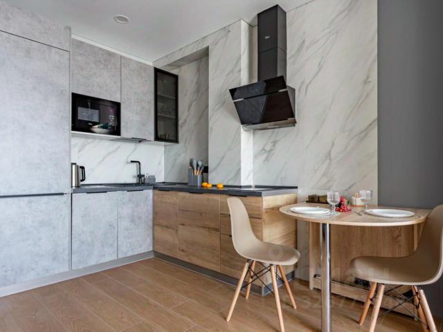 холодильник, варочная панель, чайник, кофемашина, необходимая посуда, столовые приборы и принадлежности