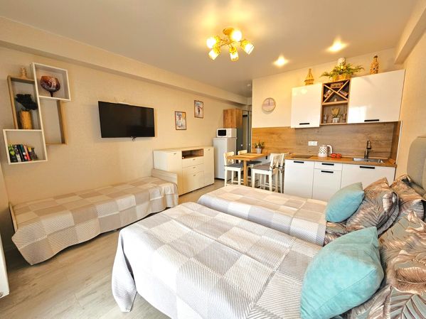 От собственника. До моря 90 метров! Всегда мало людей на пляже! При выходе к морю не надо переходить через ж/д пути. Спуск оборудованный, полностью безопасный. Идеальное место для тихого спокойного отдыха. Квартира-студия в Сочи на Мамайке, в зелёном массиве между Дагомысом и Сочи. Площадь 36 м. кв. Этаж 3/5. Балкон с видом на море. Высота потолков 2,9 м. С/у с ванной, совмещённый, плитка. В квартире есть телевизор на 20 цифровых каналов, кондиционер, шкаф, два раскладных дивана, большой холодильник, микроволновка, стиральная машина, пылесос, эл. плита, кухонная мебель, эл. чайник, посуда, бойлер (горячая вода). Есть быстрый WIFI. На балконе столик и стулья. Есть мангал с шампурами. На пляже всегда мало людей, самое чистое море. До супермаркета "Пятёрочка" - 20 минут пешком. Кафе - на пляже Дагомыса. Есть возможность заказа продуктов с доставкой на дом. Магазин сам обеспечивает доставку своих товаров. Большой и качественный ассортимент, привозят быстро. В 10 минутах пешком от дома станция ж/д 73-й км. Оттуда идут прямые электрички на Олимпийский парк, Красную поляну, аэропорт. До ж/д вокзала Сочи 15 минут. Идеально, если Вы планируете отдыхать с автомобилем. Гостей приглашаем на срок не менее 7 дней. Размещение с домашними питомцами рассматриваем индивидуально по запросу. Размещение строительно-отделочных бригад не предусмотрено.
