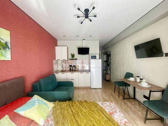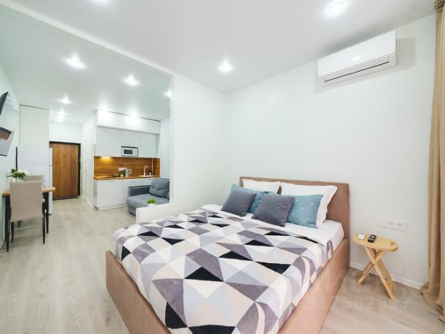 Спальные места: удобная 2-сп кровать и односпальное раскладное кресло. Квартира подходит для проживания 3 человек (2 вз и 1 ребенка).