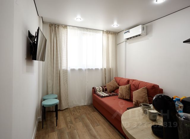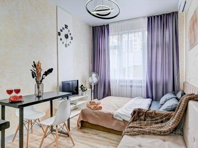 Общая площадь 19 кв.м., с балконом, выходящим во двор. Дом новый, сдан в 2019 году. Косметический ремонт в квартире сделан в мае 2024 года, все новое и свежее. Все необходимое для комфортного проживания троих человек имеется: удобная кухня со всей техникой, обеденная зона, двуспальный диван - кровать и кресло - кровать на одного человека . Смарт телевизор, микроволновка, стиральная машинка, утюг, гладильная доска, Wi-Fi, электрические тёплые полы, кондиционер, бойлер, бесплатная парковка.