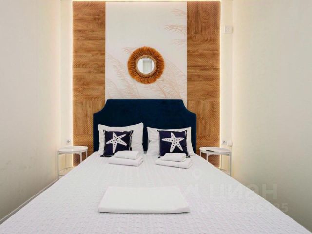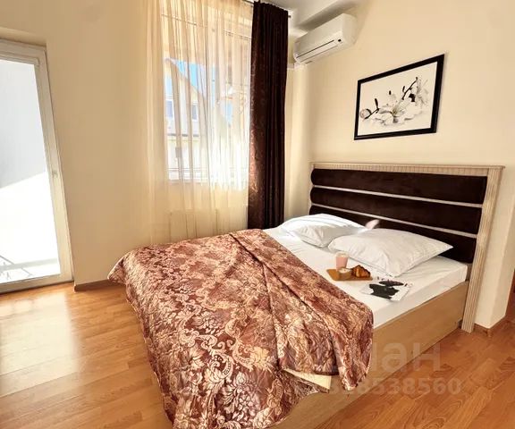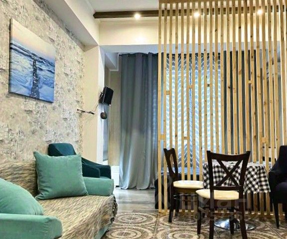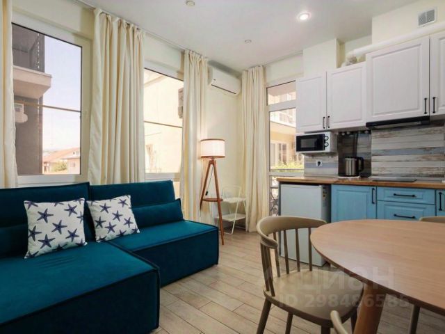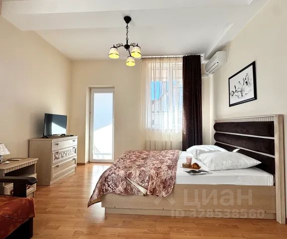 Комфортная студия расположена на 2 этаже может вместить до 6 гостей: 5 взрослых и 1 ребенок. В студии отдельная спальня с двухуровневой кроватью (на каждом уровне матрас размером 160/200). Раскладной диван в другой комнате. Есть балкон, кондиционер, телевизор ,сейф. На кухне все необходимое для самостоятельного приготовления пищи: посуду, холодильник, СВЧ, газовую плиту. В отдельном санузле установлена душевая кабина, умывальник, полотенцесушитель, удобные полочки, зеркало, фен. Гостям предоставляются полотенца и постельное белье.