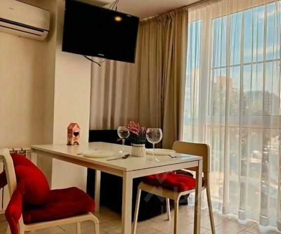 Уютная студия с видом на горы в закрытом жилом комплексе клубного типа sea side. На территории два бассейна детская площадка, беседки для отдыха ландшафтный дизайн. 200 метров до самого чистого пляжа! В шаговой доступности сочи парк, фишт, олимпийские объекты, множество кафе и ресторанов, рядом магазины и аптека. Расстояние до аэропорта -10 минут на машине до курортов красной поляны 35 минут, до центра сочи 35 минут, до жд вокзала имеретинский 5 минут. 3 спальных места, для каждого гостя предоставляются одноразовые средства гигиены, краткосрочного или долгосрочного проживания. Квартира оснащена всем необходимым для комфортного проживания для 3 человек. Современное кухонное оборудование, набор посуды и столовых приборов, -wi-fi, кабельное телевидение, жк телевизор, кондиционер, постельное бельё и полотенца уже включены в стоимость проживания, плюс индивидуальный гигиенический набор для каждого гостя. Правила проживания: Заселение с 14: 00 оплата при заслении наличными Выезд до 12: 00, при необходимости, можно продлить за дополнительную плату, при наличии возможности Страховой залог возвращается в течении 12 часов после выезда при отсутствии претензий За оставленный мусор с залога удерживается 1000р При себе иметь паспорт Запрещено: -Курение в квартире -Проведение вечеринок -Проживание лицам младше 18 лет -Перестановка мебели