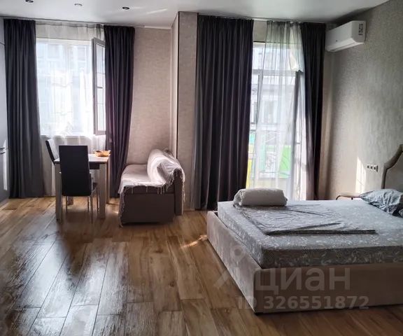 Сдаеться студия , можно помесячно либо посуточно , студия находиться в Сириусе, ост. казачий рынок, вокруг как частные дома так и различные ЖК , магазины в шаговой доступности , общественный транспорт в любую точку города. Удобная развязка если вы на машине. Квартира на первом этаже , закрытая территория с видеонаблюдением , чистый ухоженный двор с детской площадкой, спортивной площадкой. Сдаеться для одного, двух , трех человек. Супер комфортное расположение , при раннем бронировании лета 2026. будет скидки %. Можно помесячно до лета , цена 25000+комунальные.