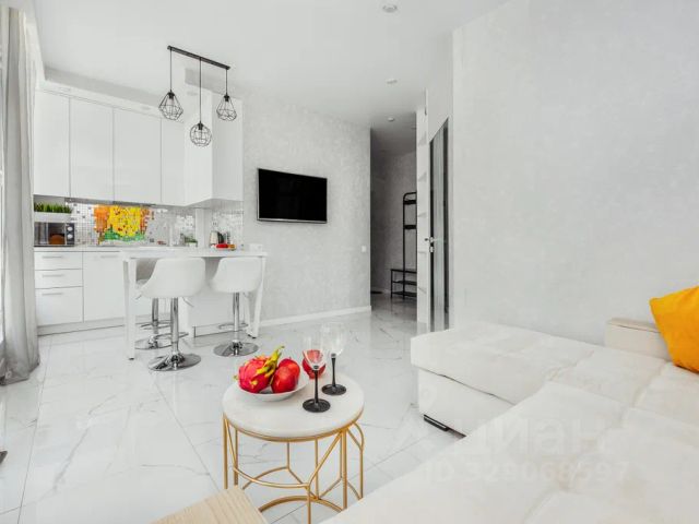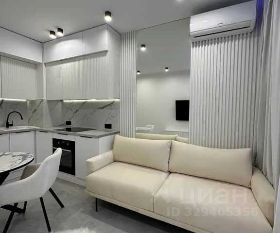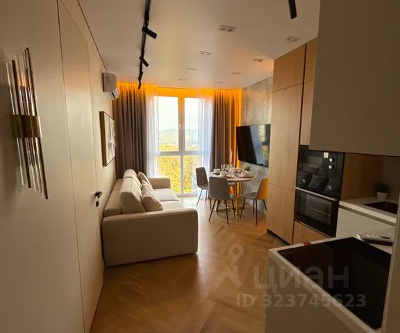 Стильная квартира с интересными элементами декора, панорамным видом и дизайнерским ремонтом площадью 26 м² в жилом комплексе сочи парк. Идеально для отдыха - курортная часть города, удобная транспортная доступность и развязка