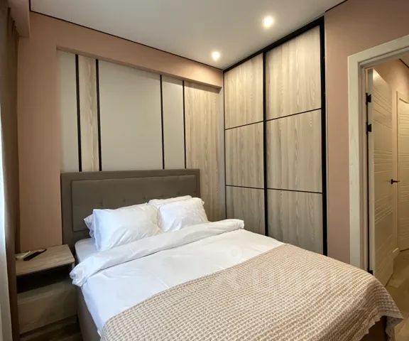В квартире сделан ремонт, зонированная кухня, двуспальная кровать, диван. Имеется все необходимое для вашего удобства: кондиционер, Wi-Fi, телевизор, холодильник, плита, духовой шкаф, кухонные принадлежности, стиральная машина, гладильная доска, утюг, постельное белье и полотенца. Охраняемая территория, кафе, магазин. Имеется спортивная и детская площадка.