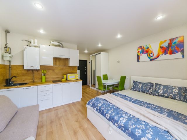 Квартира-студия у моря. Специально для гостей, желающих провести чудесный отдых на лучших пляжах города с лазурной и чистой морской водой. Квартира с чудесным видом на храм и море укомплектованы: 1. Спальная зона для качественного сна, а также рабочее место для творчества и созидания: два отдельных двуспальных раскладных дивана, вместительный шкаф для одежды. 2. Выделенная обеденная зона с оборудованной кухней в современном стиле: холодильник, встраиваемая варочная панель, встраиваемая вытяжка, микроволновая печь, чайник, посуда для приготовления, столовая посуда и приборы, кухонные принадлежности. 3. Современная электроника и техника: большой ЖК-телевизор, быстрый WIFI, кондиционер, стиральная машина, фен, утюг, гладильная доска, сушилка для белья. 4. Совмещенный сан-узел: ванна с душем, туалет, полотенцесушитель, гигиенический душ, большое зеркало с подсветкой. 5. В стоимость проживания входит: комплект белого постельного белья и полотенец, разовый комплект для личной гигиены (мыло, гель для душа, шампунь), средство для мытья посуды. Квартира расположена в центре района Мамайка с богатой инфраструктурой. Вблизи имеются столовые, кафе, рестораны, кофейни, сетевые магазины Магнит, Пятерочка, банкоматы, ярмарки местной продукции свежие овощи фрукты по сезону. Рядом протянулась красивая набережная вдоль реки Псахе, где у гостей появляются уникальные возможности для полноценного отдыха, свежих прогулок, занятий спортом с пользой для здоровья (в наличии несколько спортивных площадок, оборудованных для work Out). В непосредственной близости имеются детские площадки, а также детская комната для развития детей всех возрастов. Район отличается высокой доступностью к основным достопримечательностям города Сочи. Рядом имеется ЖД станция, откуда есть возможность добраться до: - ЖД вокзал Сочи (~7 мин) - Олимпийский парк (~40 мин), - Аэропорт Сочи (~40 мин) - Красная Поляна (~1 час 15 мин). Также можно воспользоваться дублером Курортного проспекта (главная транспортная артерия города Сочи): - ЖД вокзал Сочи (~ 7 мин) - Олимпийский парк (~40 мин), - Аэропорт Сочи (~40 мин) - Красная Поляна (~1 час 15 мин). В пешей доступности для гостей: - море, магазины, кофейни, кафе, столовые, банкоматы, детские и спортивные площадки ~ 100м. - набережная, зоопарк, аквапарк ~ 200м. Будем рады принять Вас в сети современных квартир Гости-24.