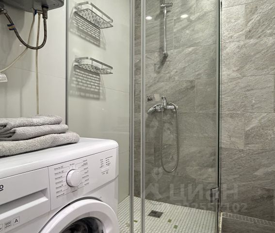 В санузле имеются раковина с зеркалом, унитаз, душевая, полотенцесушитель, этажерка, стиральная машина, фен, гигиенические принадлежности (мыло, гель для душа, шампунь), набор полотенец для каждого гостя.