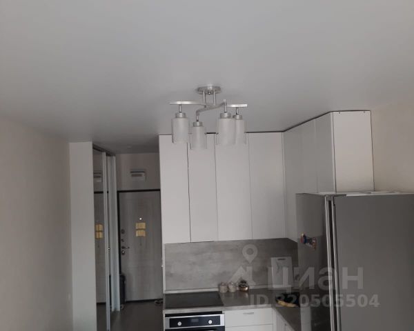 3. Выделенная обеденная зона. Оборудованная кухня в современном стиле: холодильник, встраиваемая варочная панель, вытяжка, микроволновая печь, чайник, посуда для приготовления, столовая посуда и приборы, кухонные принадлежности.