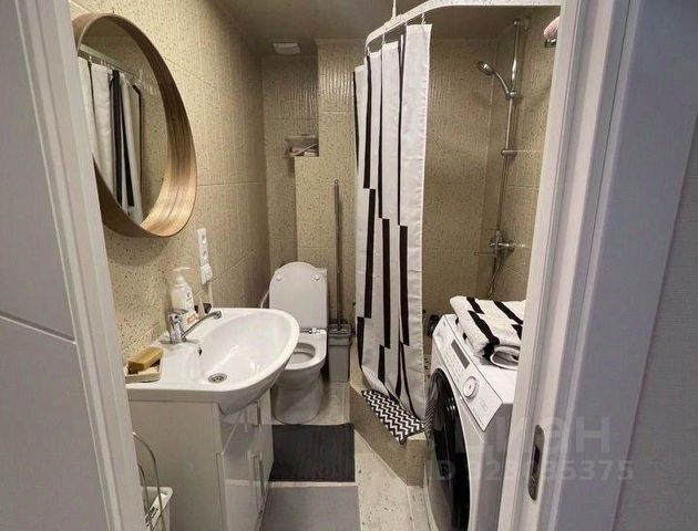 5. Совмещенный сан-узел: душ, туалет, большое зеркало с подсветкой.