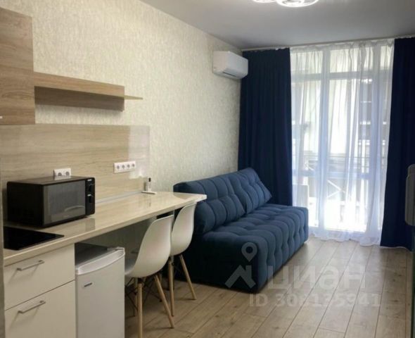 Сдаётся стильная квартира-студия с дизайнерским ремонтом на Курортном проспекте в Сочи. Общая площадь — 33,1 кв. м, из которых 30 кв. м — жилая зона и 3 кв. м — уютная кухня. Квартира расположена на 11 этаже 13-этажного дома, построенного в 2021 году, с подземной парковкой и удобными пассажирскими и грузовыми лифтами. В квартире есть всё необходимое для комфортного проживания. Высокие потолки (3 метра) создают ощущение простора и света. В комнате и на кухне установлена современная мебель, а также вся необходимая техника: кондиционер, холодильник, посудомоечная машина, телевизор и стиральная машина. Санузел совмещённый с душевой кабиной. Из окон открывается вид во двор, а на балконе можно насладиться утренним кофе. Дом, в котором находится квартира, оснащён пандусом и интернетом, поэтому подходит для людей с разными потребностями. Подземная парковка обеспечит безопасность вашему автомобилю. Панельный дом в отличном состоянии, так как был построен недавно. Район располагает развитой инфраструктурой: поблизости есть школы и магазины для ежедневных нужд. Удобная транспортная доступность позволяет быстро добраться до центра города и других районов Сочи. Условия аренды гибкие: договор заключается напрямую с собственником, без комиссии. Возможна аренда по договору на длительный срок. Квартира подойдёт для одного человека или пары. Залог и предоплата обсуждаются индивидуально. Приглашаем вас на просмотр! Записывайтесь, чтобы увидеть эту уютную квартиру своими глазами и оценить все её преимущества. Квартира-студия с балконом в районе Хостинский в городе Сочи.