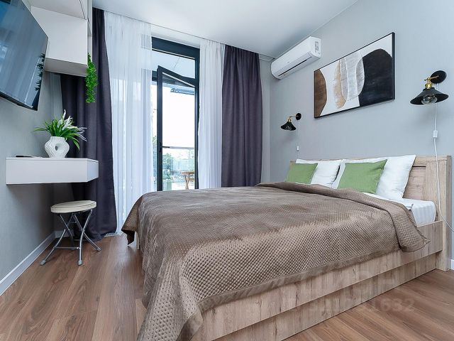 1. Огромная двуспальная кровать с ортопедическим матрасом - для лучшего сна или просмотра любимого фильма; концентрированная рабочая зона для творческого или рабочего созидания; вместительный шкаф для вещей и одежды.