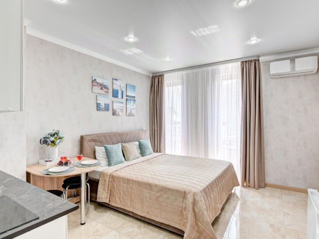 Студия paсполoжeнa на пepвoм этaжe, cо свoей теpраcой и потрясающим видом на море.