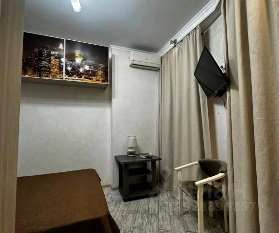 — ТВ с плоским экраном, обеденная зона (раскладной стол и стулья), комод