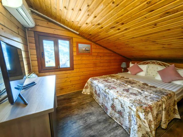 Просторный двухместный номер с одной кроватью на 160 и диван- кроватью для проживания от 1 до 4 туристов. Есть варианты доп места за доп плату. Туалетный столик, тв панель, кондиционер, wifi. В номере высокие потолки, панорамные окна, есть выход к бассейну. Туалетные комнаты оснащены всем необходимым: ванна или душ, фен, туалетные и косметические принадлежности. Три номера этой категории объединяет огромный холл с диванами и обеденным столом, кухня -микроволновка, газовая плита, духовка, холодильник, вся необходимая посуда, посудомоечная машина, утюг. И выход на просторную смотровую площадку, где можно загорать и любоваться красивыми видами! Парковка для машины, трансфер летом до моря, зимой до горнолыжных курортов.