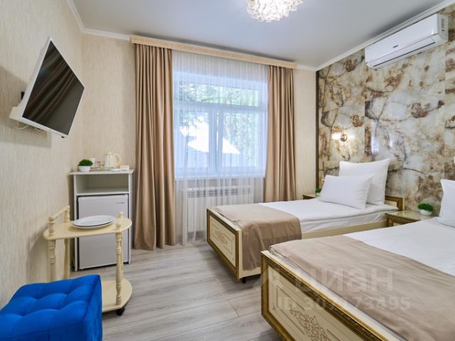 Двухместный номер улучшенный с двуспальной кроватью 18 кв.м. Для гостей есть все необходимое для комфортного отдыха: место для хранения вещей, телевизор,холодильник,кондиционер, чайная станция, удобства, предоставляются туалетно-косметические принадлежности,полотенца.