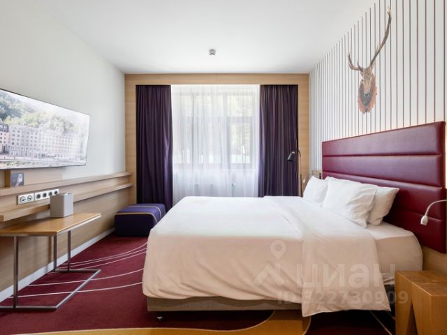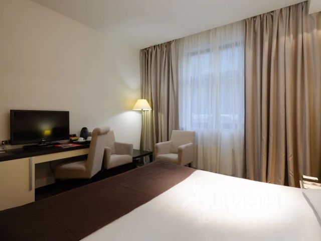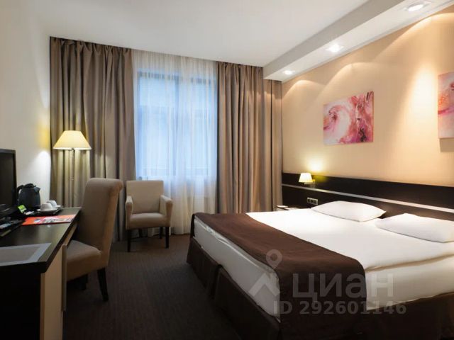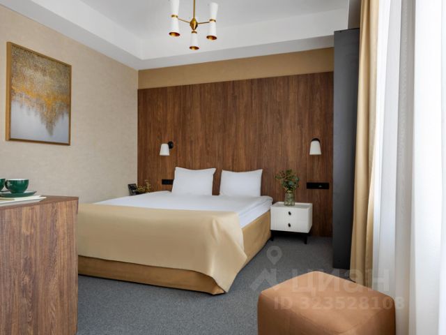 Однокомнатный номер. В номере: одна большая двуспальная кровать, мягкий диван, душевая комната, прикроватные тумбочки с бра, встроенный шкаф, рабочий стол, стул, мини-холодильник, индивидуальная система климат-контроля. Номер оснащен: плазменная панель с диагональю 42 дюйма, телефон, набор для приготовления чая и кофе, сейф, ростовое зеркало, банные принадлежности, бутылка воды, фен.