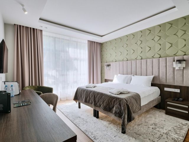 Просторный номер с мансардными окнами, что позволяет любоваться звездным небом, а утром пробуждаться от солнечных лучей. Номер оборудован индивидуальной системой вентиляции воздуха, феном, телевизором с плазменной панелью, рабочим столом и электронным сейфом. Для максимального удобства гостей все номера укомплектованы полотенцами, косметическими принадлежностями, чайной станцией, бутилированной водой, халатами и тапочками для каждого гостя. В номере может быть организовано проживание на дополнительном месте.