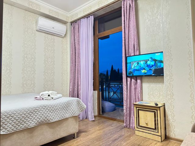 Кто уже побывал в центре современного города-курорта Сочи, тот возвращается именно сюда. Лучшее местоположение - в шаговой доступности лучшие пляжи (муниципальные, частные), достопримечательности, чистота и красота! Привыкли к комфорту? Тогда Вам к нам!!! Вид на море, горы гарантирован! Уютный однокомнатный номер 35 кв. м. на 5 мансардном этаже. В номере: 1 двуспальная кровать, 2 односпальные кровати, трюмо, журнальный стол, набор посуды, стулья, кабельное ТВ, шкаф-купе, холодильник, кондиционер. Ванная комната с душем. Вид на внутренний двор, бассейн, море, горы. Рядом с номером находится обзорная площадка - отрытая терраса с прямым видом на море (для гостей доступна пляжная мебель: стол, кресла, лежаки). На летний сезон 2025 года предлагаем к посуточной аренде уютные, светлые и самое главное — ВИДОВЫЕ номера разной площади, рассчитанных на размещение до 6 человек включительно. Полностью оснащенная всем необходимым кухня, шезлонги, бассейн, детская площадка, столики, парковка — в распоряжении гостей. На территории дома имеется мангал, оборудованный всем необходимым для приготовления шашлыка. Рядом с бассейном или на собственной террасе Вы сможете позагорать на шезлонгах, любуясь видом открытого моря. В нашем гостевом доме небольшое количество номеров (экономов нет), поэтому спокойный и комфортный отдых будет обеспечен. На территории также можно посетить хаммам с бассейном, спа салон, кафе за отдельную плату. Особенностью данного гостевого дома является его местоположение — центральная часть города Сочи! До парка и пляжа Ривьера, Морского порта, Платановой аллеи, Вы сможете добраться на транспорте менее, чем за десять минут. Также муниципальный пляж Альбатрос открыт для круглогодичного посещения. Остановка общественного транспорта, магазин Магнит напротив. Местонахождение нашего гостевого дома подразумевает комфортное передвижение по ровной поверхности. — минимальный срок бронирования 3 ночи. Стоимость указана на сентябрь 2025г. Звоните, пишите, чтобы получить актуальную информацию на интересующие Вас даты.