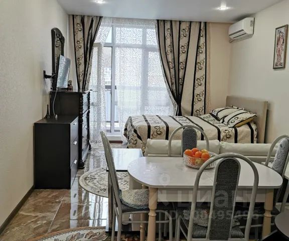 Сдается уютная дизайнерская студия с камином в Дагомысе (первая береговая линия). До моря 3 минуты пешком. Широкая береговая линия, чистое море, множество кафе баров, игровых площадок. Есть все необходимое для жизни. Магазины, остановка в шаговой доступности. До центра Сочи 15 минут на Ласточке (станция рядом), на маршрутке 20-25 минут. Охраняемая территория, есть детская и спортивная площадки, уличные тренажеры. Квартира укомплектована всем необходимым для комфортного проживания. Мебель: диван (140х200), кровать-чердак (160х200), обеденная зона. Бытовая техника: чайник, микроволновка, варочная поверхность, кондиционер, стиральная машина, холодильник, wi-fi, телевизор с приставкой TV. Ванная комната: унитаз, раковина, душевая. Удобства: горячая/холодная вода, полотенца, постельное белье, посуда, гладильная доска, утюг, фен, сушилка для белья. Есть своя веранда с камином, мебелью и зоной для отдыха. Депозит возвратный (5000). Сдается на срок от 3 дней.