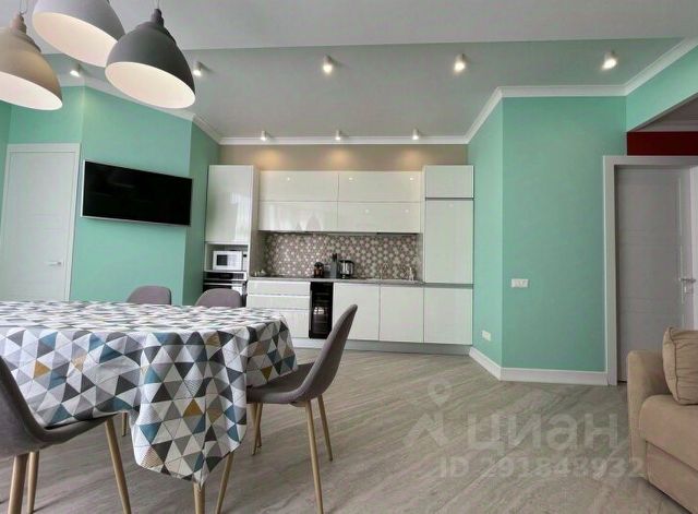 Общая зона кухня-гостиная - smart-телевизор, большой обеденный стол, два дивана, один диван раскладывается полноценное двуспальное место, аудиосистема с караоке.
