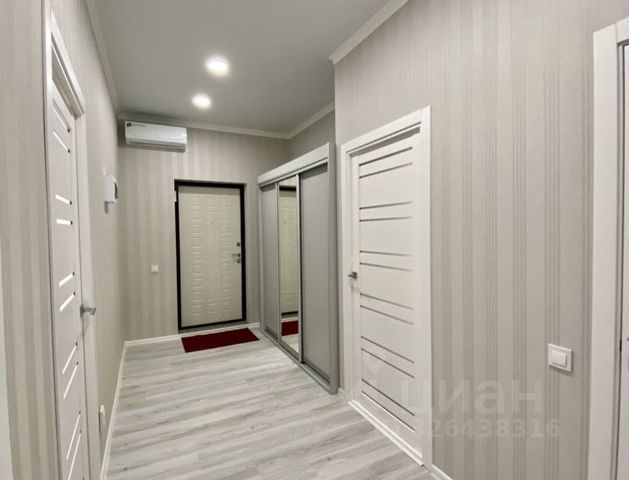 прихожая с зеркалом в полный рост и гардеробом, кухня-гостиная, зона ТВ, санузел и прачечная(стиральная машина, сушильная машина, гладильная доска и утюг), отдельный выход на террасу и к бассейну, лестница на второй этаж с сенсорной динамической подсветкой;